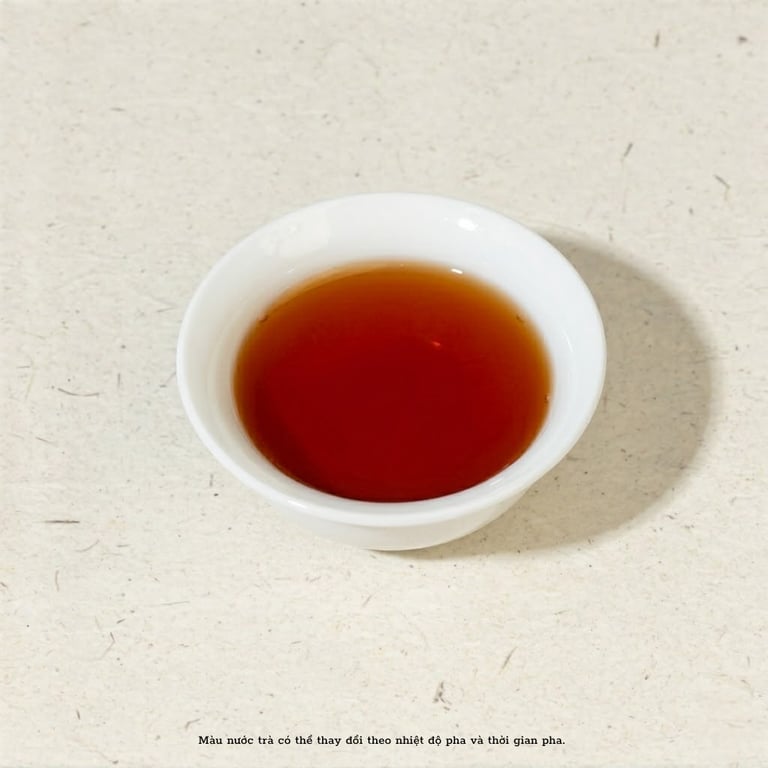 Khi pha, Hồng Trà Cổ Thụ Hỷ Tước tỏa ra màu hồng đỏ sánh quyến rũ, sóng sánh nhẹ như mật ong hổ phách.