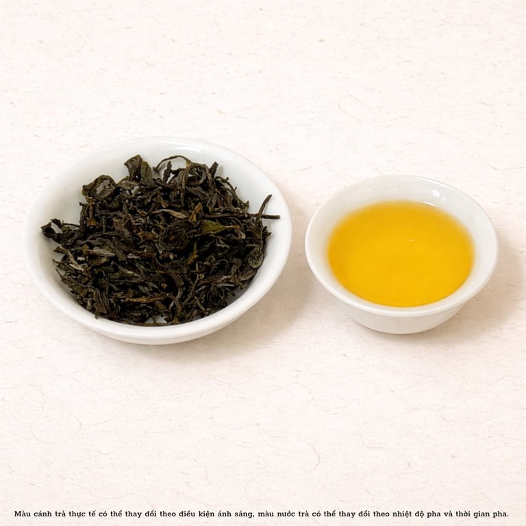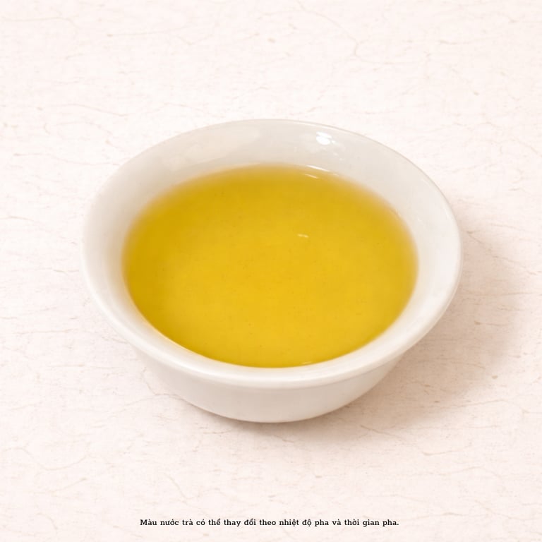 Nước trà xanh vàng trong, vị chát nhẹ – ngọt hậu sâu, lưu vị lâu nơi cổ họng, mang đậm hơi thở núi rừng.