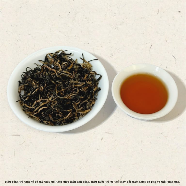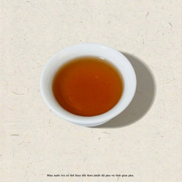 Khi pha, Hồng Trà Cổ Thụ Thượng Hạng hiện ra với màu hồng đỏ ánh mật, trong trẻo và rực rỡ như ánh chiều tà trên đỉnh núi Hà Giang. Đây là sắc màu đặc trưng mà chỉ những loại hồng trà oxy hóa sâu, đúng chuẩn cổ thụ mới có được.
